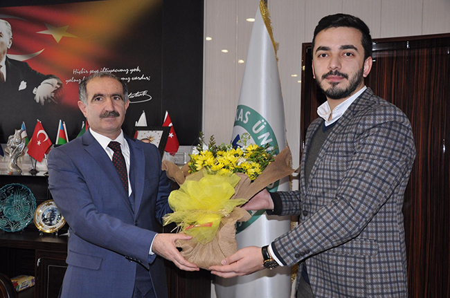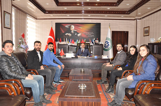 AK Parti Kars Gençlik Kollar Başkanı M. Emin Haliloğlu ve Yönetim Kurulu üyeleri, Kafkas Üniversitesi Rektörü Prof. Dr. Hüsnü Kapu'yu makamında ziyaret etti.