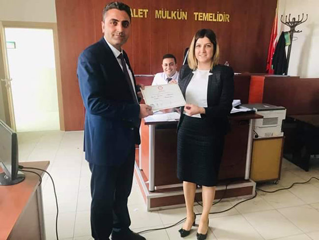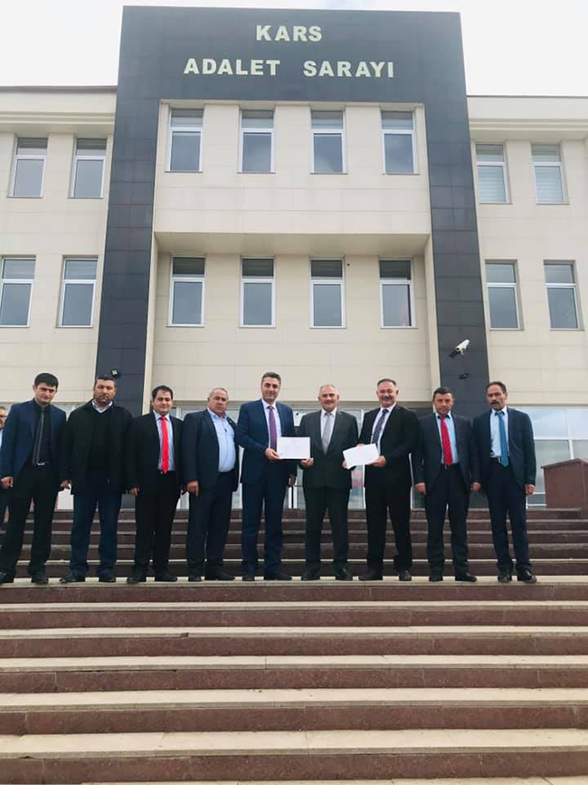 Akyaka’da seçilen AK Partili Belediye Başkanı Ergüder Toptaş, mazbatasını Kars Adliyesi İlçe Seçim Hakimi Sibel Vurur’dan aldı.