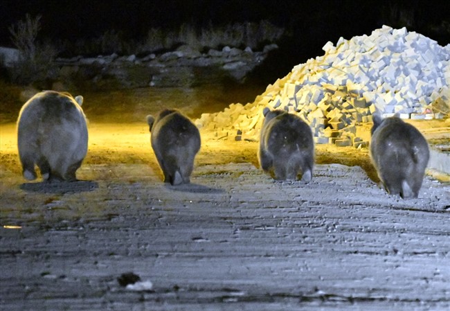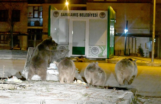 Kars'ın Sarıkamış ilçesinde yaşayan, dünyanın tek göç eden bozayıları, çöplerde beslenmeyi sürdürüyor.