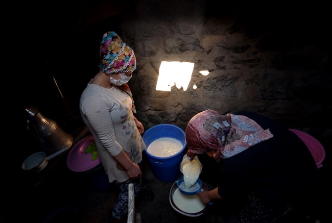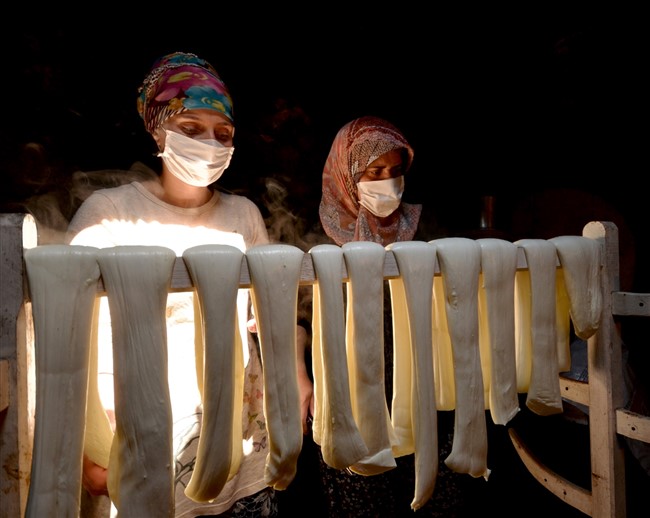 Peynir üreten kadınlardan Sayime Al, sezonun ilk çeçil peynirini üretmek için kolları sıvadıklarını söyledi.