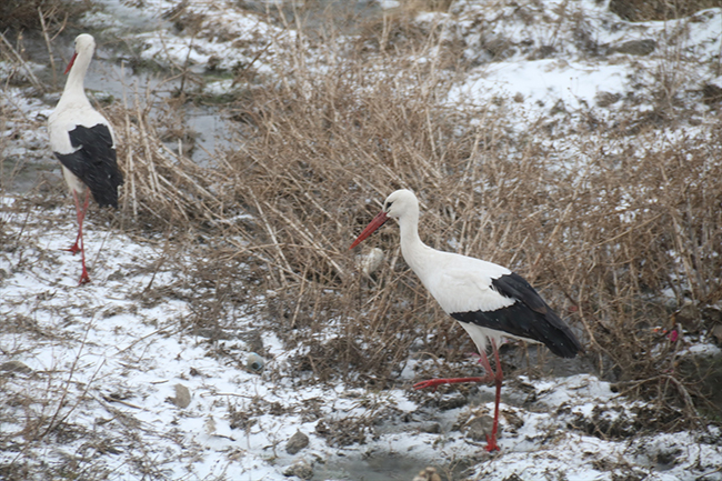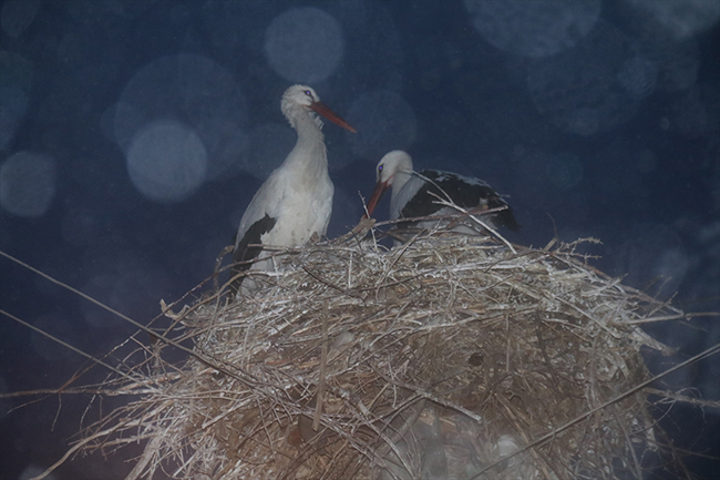 Ancak leylekler mart ayının sonuna yaklaşılmasına rağmen bölgede etkili olan kar yağışı nedeniyle zor anlar yaşadı.