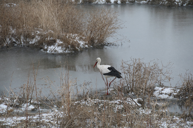 Köye gelen ve bir kaç gündür devam eden kar yağışının doğayı yeniden beyaza bürümesi sebebiyle leylekler de yiyecek bulmakta güçlük çekiyor.