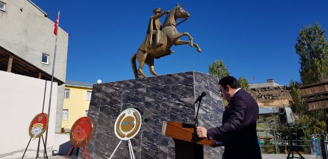 Atatürk Anıtına çelenk sunulmasıyla başlayan tören, Saygı Duruşu ve İstiklal Marşı’nın okunmasıyla devam etti.