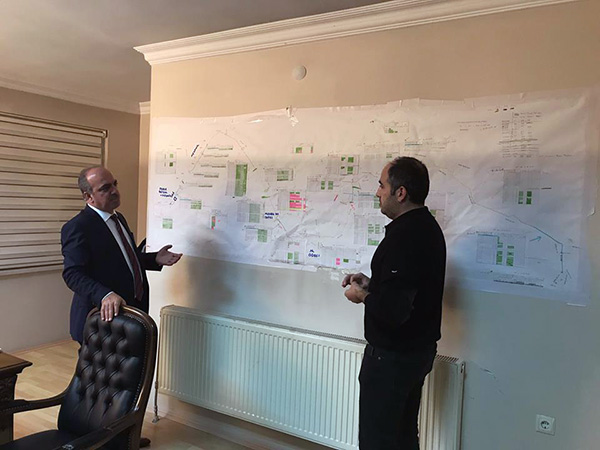 Dündar, Iğdır içme suyu isale hattı inşaatını inceledikten sonra şantiyede işin ilerleme durumu ve öncelikleri hakkında bilgiler aldı.