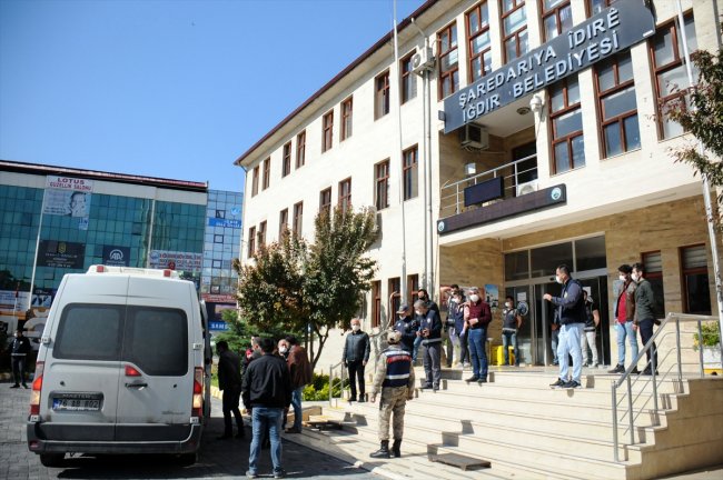 Aramalar sırasında zırhlı araç desteğindeki polisler de belediye binası çevresinde geniş güvenlik önlemleri aldı.