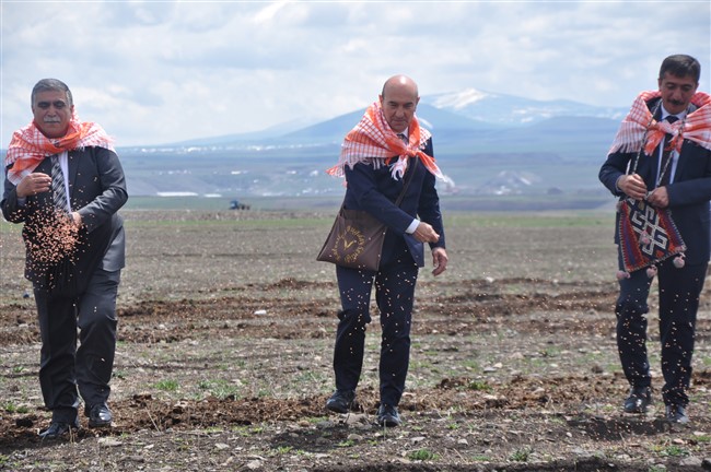 İzmir Büyükşehir Belediye Başkanı Tunç Soyer tarafından Kars çiftçisine 150 ton arpa ve buğday desteği verildi. Tohumlar düzenlenen törenle tarlalara ekimi yapıldı.