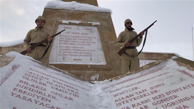 Yapılan konuşmaların ardından kız ve erkek öğrencilerden oluşan temsili askerler saygı nöbeti tuttu. Sarıkamış Şehitliği’nde temsili nöbet tutan öğrenciler nöbet değişimi de yaptı. Tören daha sonra protokol üyelerinin Sarıkamış Şehitleri Anıtına karanfil bırakma ile sona erdi.