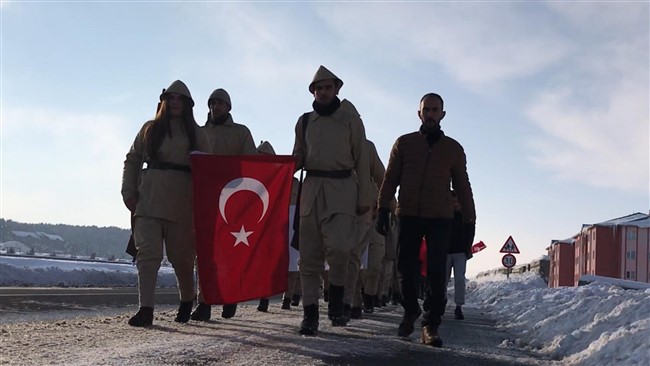 Sarıkamış Şehitlerini Anma Etkinlikleri kapsamında Allah-u Ekber Dağları’nda donarak şehit olan 90 bin Mehmetçiğin o dönemde yaşadığı zorlukları hissetmek adına öğrenciler eksi 20 derece soğukta temsili saygı nöbeti tuttu. Kafkas Üniversitesi (KAÜ) Sarıkamış Meslek Yüksek Okulu öncülüğünde üniversite öğrencileri, Sarıkamış Harekatı’nın 104. yıl dönümünde en fazla şehidin verildiği 26 Aralık günü yaklaşık 4 kilometre yürüdükleri Sarıkamış Şehitliği’nde temsili nöbet tutarak dedelerini andı.