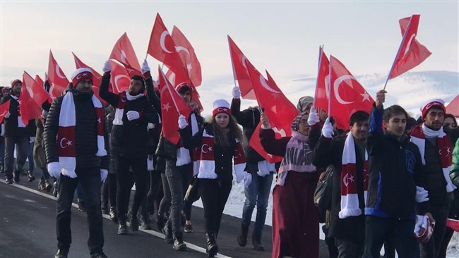Kafkas Üniversitesi Sarıkamış Meslek Yüksek Okulu öğrencileri Sarıkamış’ta 90 bin şehit için saygı nöbeti tuttu.