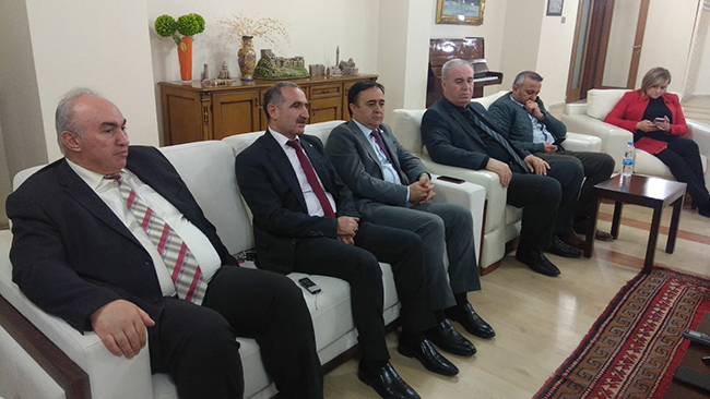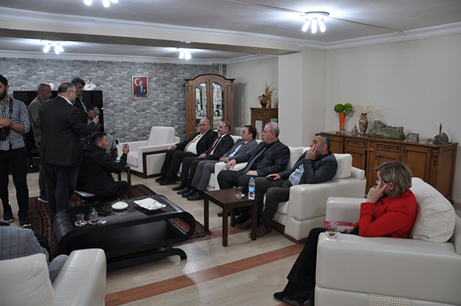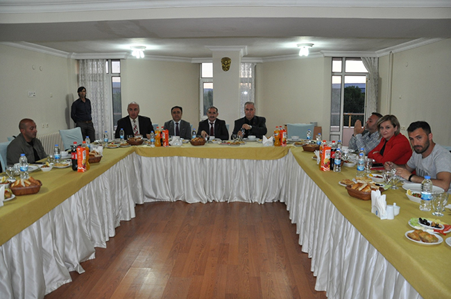 Kafkas Üniversitesi Rektörü Prof. Dr. Hüsnü Kapu, Rektör Yardımcıları Prof. Dr. Kadir Aslan, Prof. Dr. İsmail Çakmak ve Prof. Dr. Engin Kılıç, Genel Sekreter Doç. Dr. Alpaslan Yüce, Rektör Danışmanı Yrd. Doç. Dr. Gözde Kosa ile birlikte basın mensuplarıyla bir araya geldi.