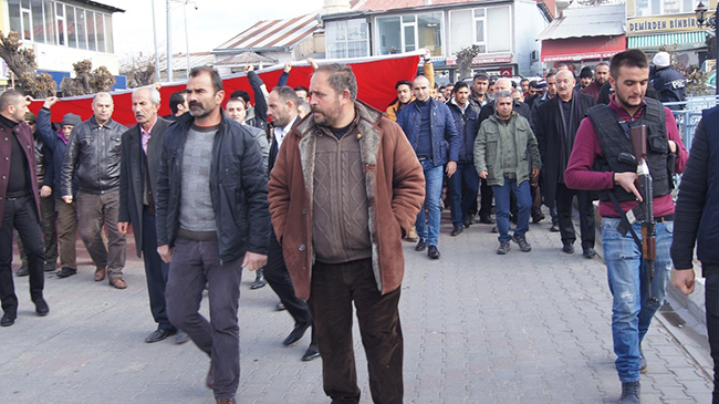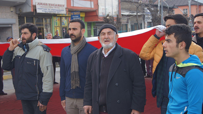 İstiklal alanında şehitler için kılınan gıyabi cenaze namazının ardından toplanan kalabalık "teröre hayır kardeşliğe evet" yürüyüşü düzenledi. Her kesimden ilçe halkının katıldığı yürüyüşte polis geniş güvenlik önlemleri alırken kalabalık 'teröre hayır' sloganları ile ilçe merkezinden yürüyüşe başladı.