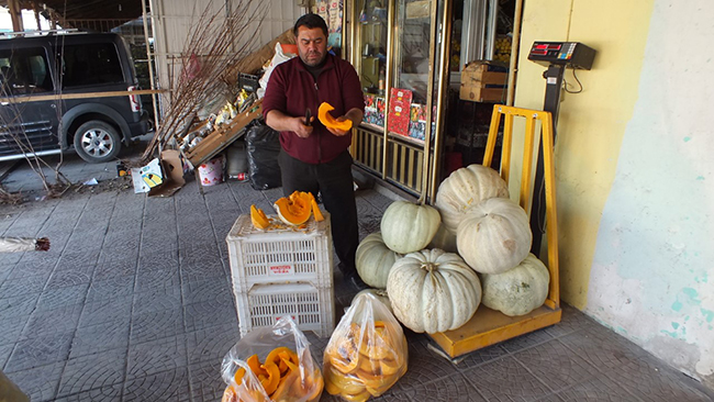 Soyulması zor olan sert kabuklu balkabaklarını soyulmuş, doğranmış ve dilimlenmiş şekilde satan Nevzat Çelikörs: “Halkımıza balkabağı satmaktan, balkabağı tatlısına vesile olmaktan mutluyum. Balkabağını kendim soyarak hazır hale getirip müşterinin isteği üzerine miktarınca satmaktayım. Pek çok yararı olan balkabağı tatlısını herkese tavsiye ederim. Balkabağı tatlısını kıyılmış ceviz dökerek yemek ayrı bir lezzettir.” Dedi.