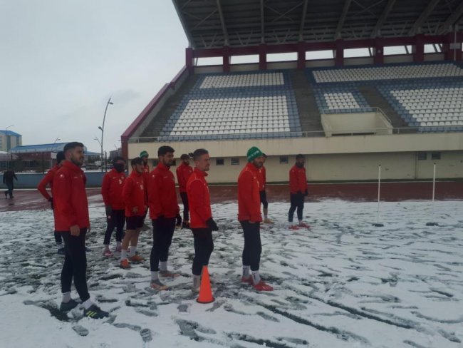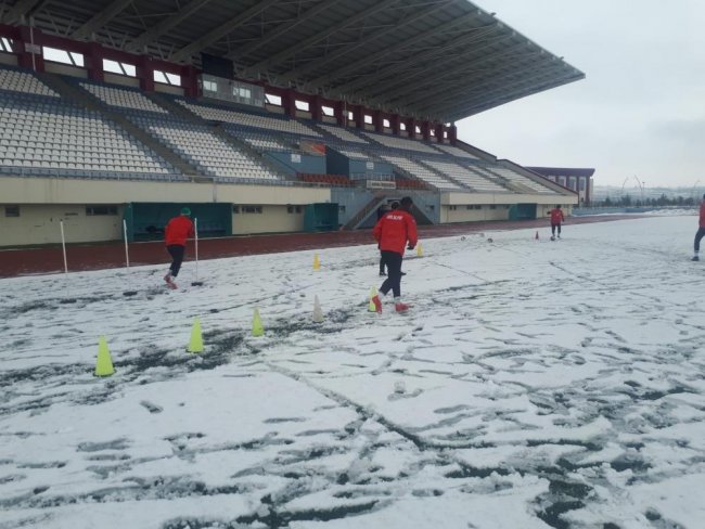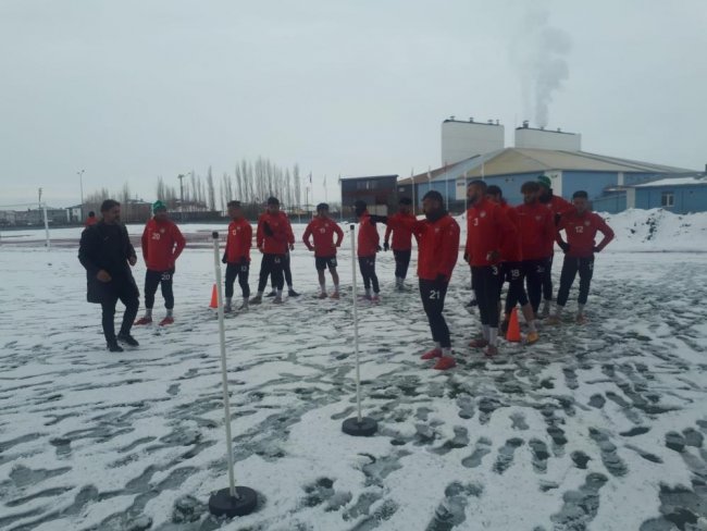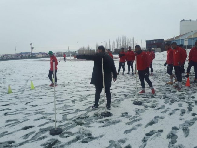 Karlı zeminde yapılan antrenmanda sporcular hırslı ve istekli olmaları görüldü. Teknik direktör Yusuf Sacit Çelik, antrenmanda hata yapan sporcularını sık sık uyardı. Yaklaşık 1,5 saat süren antrenman çift kale maç ile sona erdi.
