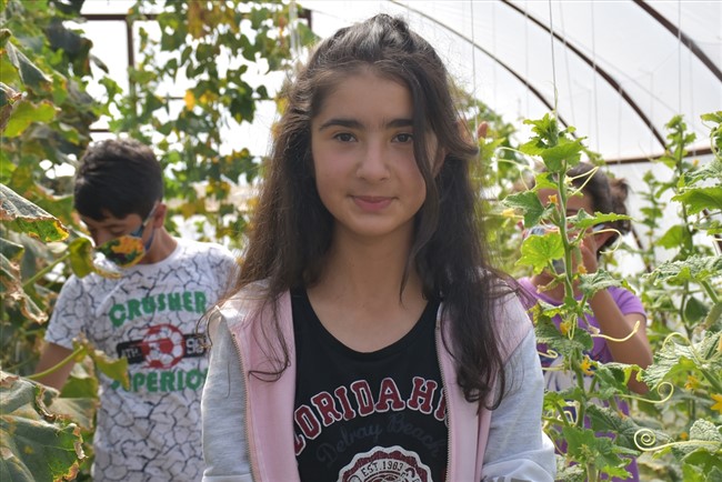 Meyve ve sebze yetiştiriciliğini öğrendiklerini dile getiren Atalay, "Serada, bahçede ektiğimiz ürünlerin nasıl yetiştiğini öğreniyoruz. Derste öğrendiklerimizi burada pratikte yapıyoruz. Daha kalıcı öğreniyoruz ve daha iyi anlıyoruz." ifadelerini kullandı.