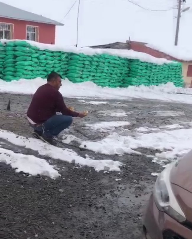 Kış mevsiminin sert geçtiği ve yiyecek bulmakta zorluk çeken tilkiler yaşam alanlarına indi. Kars’ta yiyecek bulamayıp köye inen tilkiyi Tarım Kredi Kooperatifinde görevli bir memur elleriyle besledi.