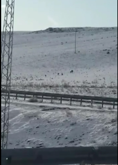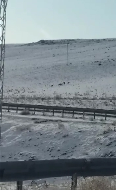Kurtları telefonla görüntüleyen Gökhan Yıldız, soğuk hava ve kar yağışı nedeniyle kurtların yiyecek bulamadıklarını ifade ederek, aç kurtların saldırısına uğrama tehlikelerinin bulunduğunu söyledi.