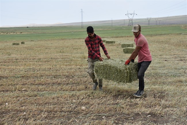 Köylülerden Ülfet Yıldırım yaptığı açıklamada, hasat mevsiminin başlamasıyla hayvanlarının kışlık yem ihtiyacını stoklamaya başladıklarını söyledi.