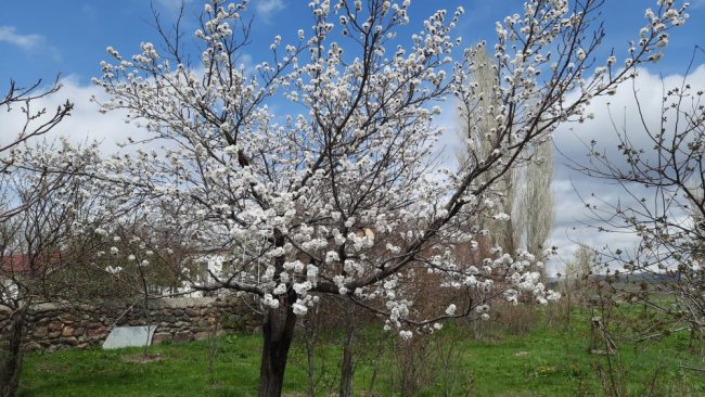 Türkiye en uzun kışın yaşandığı illerden birisi olan Kars’ta havalar ısınmaya başladı. Havaların ısınmasıyla birlikte bahçelerde bulunan meyve ağaçları da beyaz çiçeklerini açmaya başladı. Ağaçların rengarenk çiçek açması görenleri büyüledi.