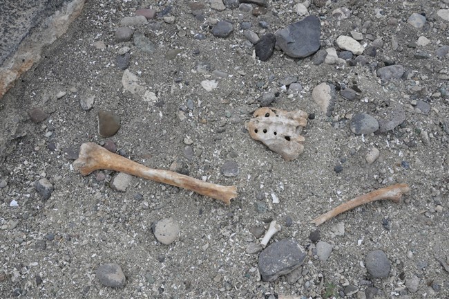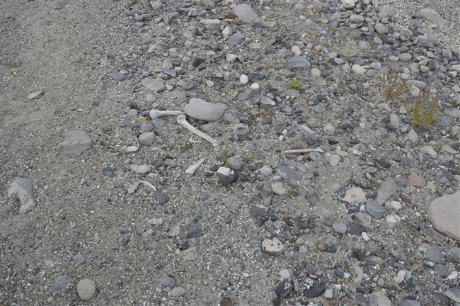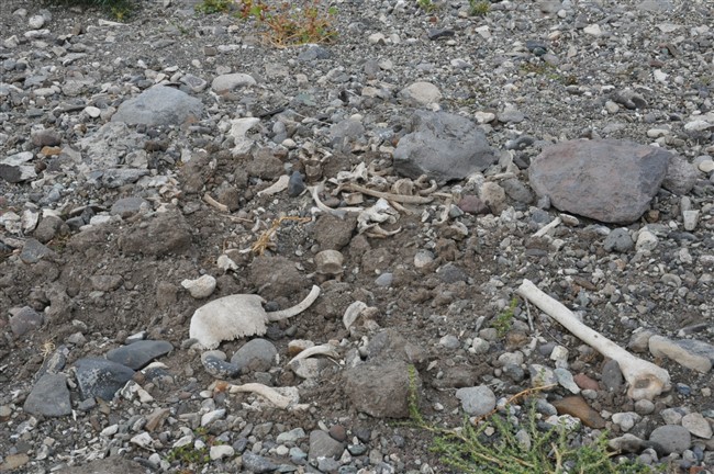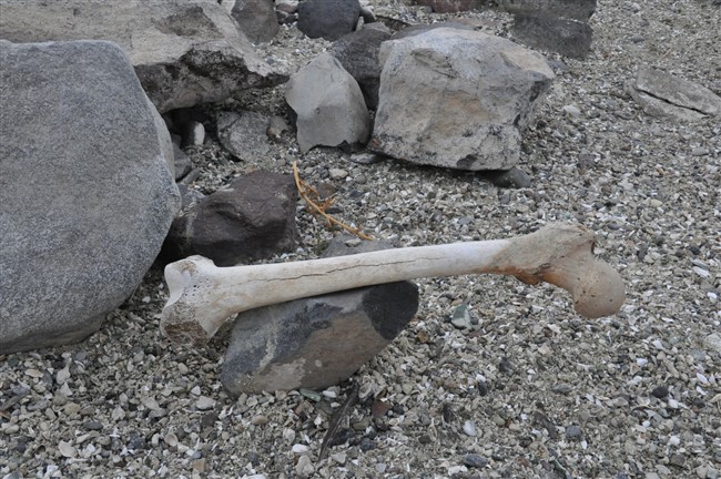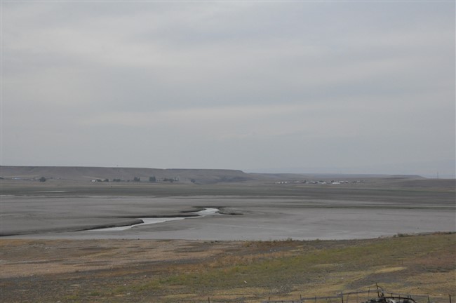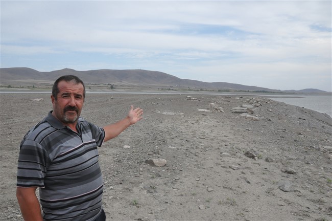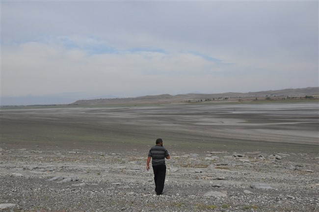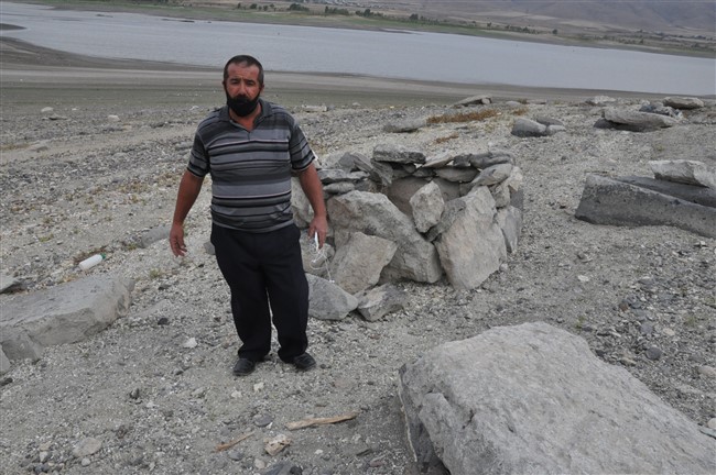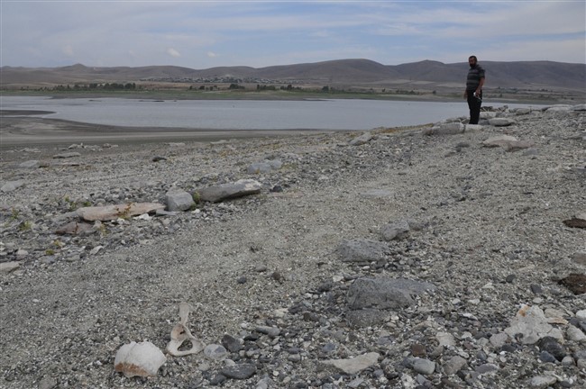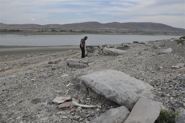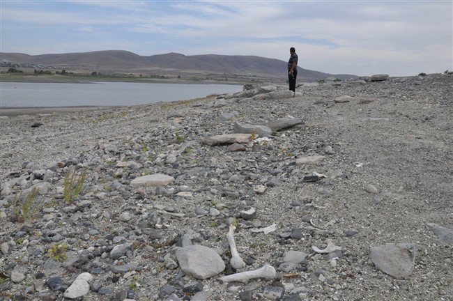 Arpaçay Barajının sularının çekilmesiyle birlikte gün yüzüne çıkan mezarlıkları aşınmasıyla insan kemikleri gün yüzüne çıktı.