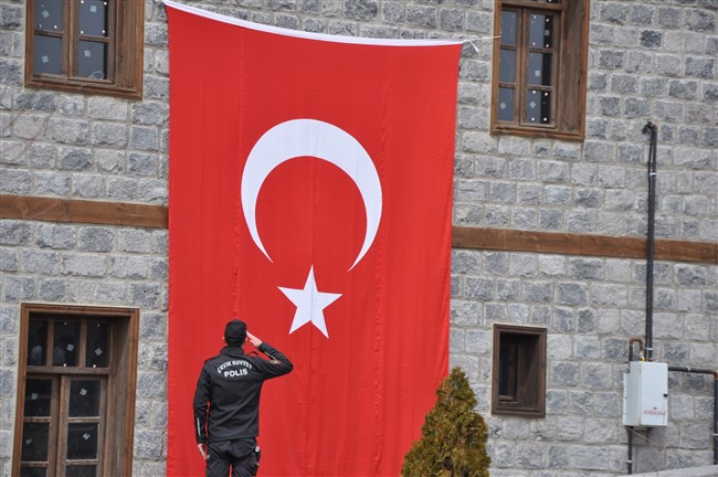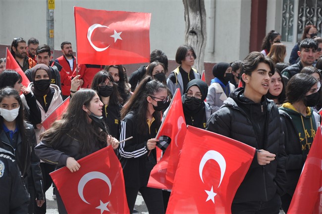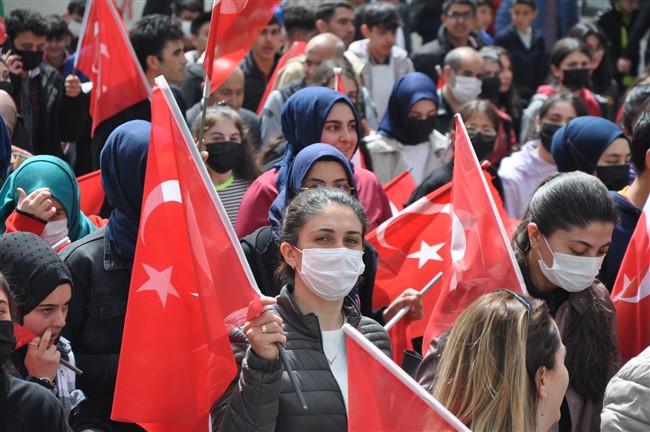 Yürüyüş boyunca davul-zurna çalındı, katılımcılar Türk Bayraklarını salladı.