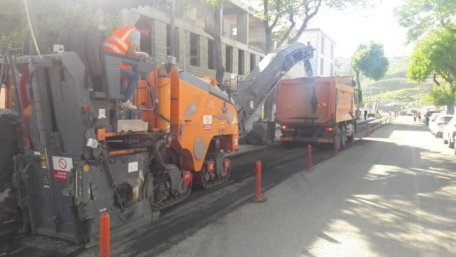 Atatürk ve Halitpaşa Caddelerinde asfalt söküm çalışmaları devam ederken, sökülen asfaltın yerine BTK (Bitümlü Sıcak Karışım) asfalt atılacak.