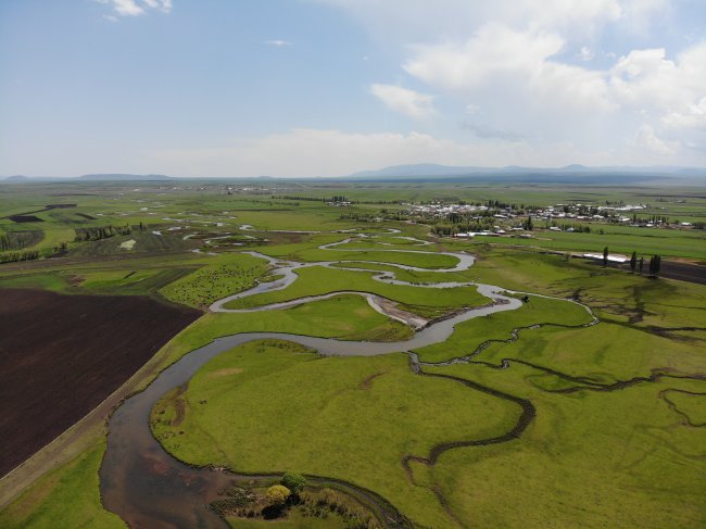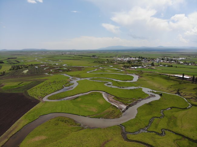 Etrafında koyun ve kuzu seslerinin yükseldiği, yeşil ve gökyüzünün mavisiyle birleşerek deli gibi akan Arpaçay menderesinin kıvrıla kıvrıla aktığını belirten vatandaşlar, “6-7 köyü geçiyor, böyle döne döne, güzel şekil kendine vere vere Ermenistan’a kadar gidiyor.