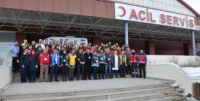 Sağlıkta kalite standartları gereğince Hastane Afet Planı kapsamında Kafkas Üniversitesi Acil Servisinde HAP Ekibi, 112 Acil ve AFAD’ın katılımıyla masa başı tatbikatı ve saha tatbikatı gerçekleştirildi.