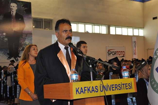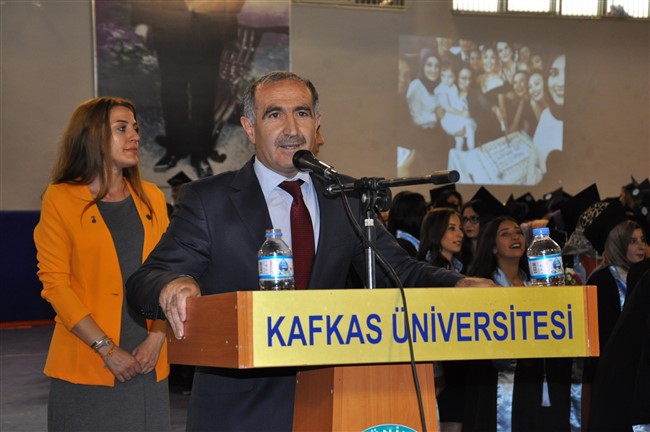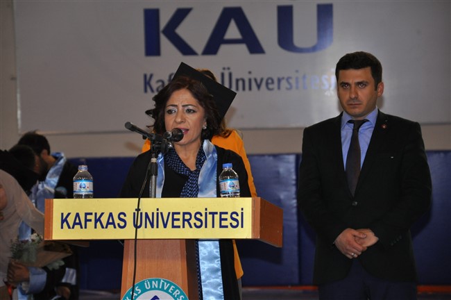 Mezun olan öğrencilere yönelik bir konuşma yapan Kafkas Üniversitesi Rektörü Prof. Dr. Hüsnü Kapu, gençlerimizin hayatın değişik yerlerinde kendilerinin temsilcileri olacağını belirterek, öğrencileri tebrik etti ve iş hayatında başarılar diledi.