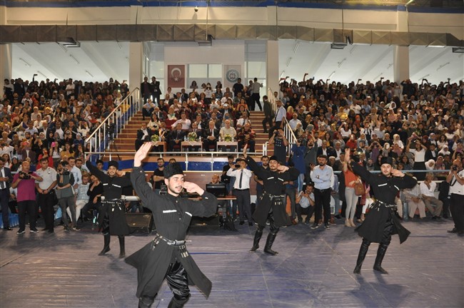 Törende Fen-Edebiyat Fakültesine bağlı 10 bölümden mezun olan yaklaşık 500 öğrencinin diplomaları fakülte öğretim üyeleri tarafından verildi. Diplomalarını alan Mütercim Tercümanlık Bölümü öğrencileri yemin etti. Ayrıca Kafkas Halk oyunları ekibi ve konservatuar öğrencileri mini bir konser verdi. Daha sonra öğrenciler kep atarak mutluluklarını paylaştılar.