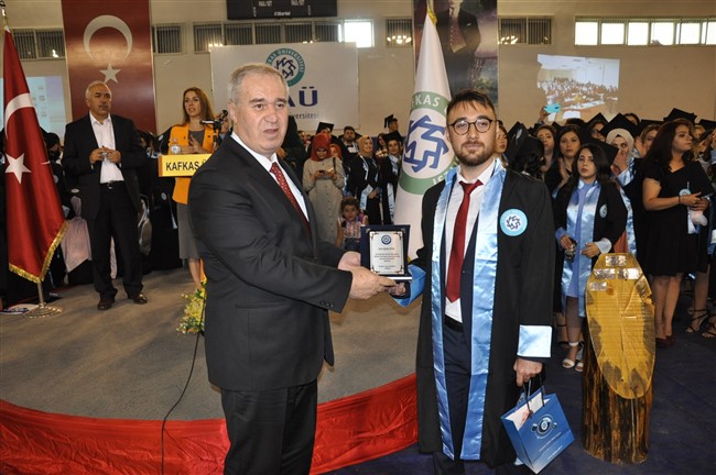Törende Fen-Edebiyat Fakültesi Batı Dilleri ve Edebiyatları Bölümünden Habibe Şahin fakülte birincisi, Batı Dilleri ve Edebiyatları Bölümünden Oğuzhan Yıldız fakülte ikincisi ve Slav Dilleri ve Edebiyatları Bölümünden Ebru Turan fakülte üçüncüsü oldular. Dereceye giren öğrencilere diploma ve ödülleri Kafkas Üniversitesi Rektörü Prof. Dr. Hüsnü Kapu, Kafkas Üniversitesi Rektör Yardımcısı Prof. Dr. Kadir Arslan ve Prof. Dr. İsmail Çakmak tarafından verildi. Daha sonra Fakülte birincisi Habibe Şahin, yaş kütüğüne birincilik plaketini çaktı.