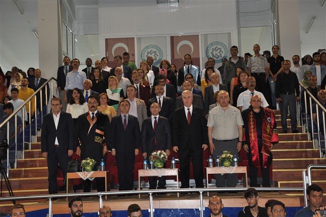 Kafkas Üniversitesi Fen-Edebiyat Fakültesi Dekanlığı’nın düzenlediği mezuniyet töreni saygı duruşu ve İstiklal Marşının okunmasıyla başladı.