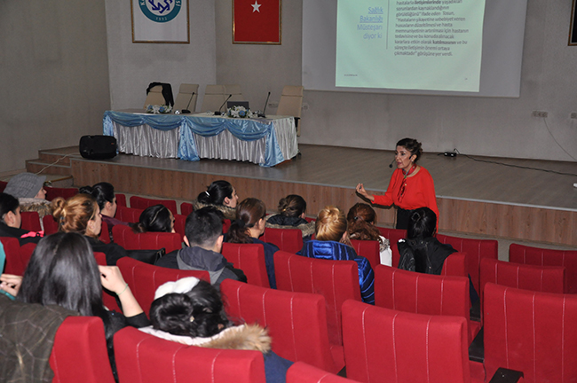 KAÜ ve Serhat Kalkınma Ajansı Teknik Destek Programı Kapsamında, yürütülen ve 3 ay süren proje kapsamında Eğitmen Hülya Mutlu, personellere yakın çevreleri ve hastalarla sağlıklı bir iletişim kurma, onları daha iyi anlayabilme, onlarla anlaşabilme ve aynı zamanda kendi kişisel gelişimin yanında huzurlu iş ortamları oluşturabilme adına neler yapılacağı konusunda bilgiler aktardı.