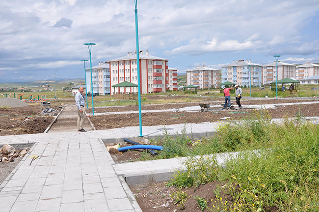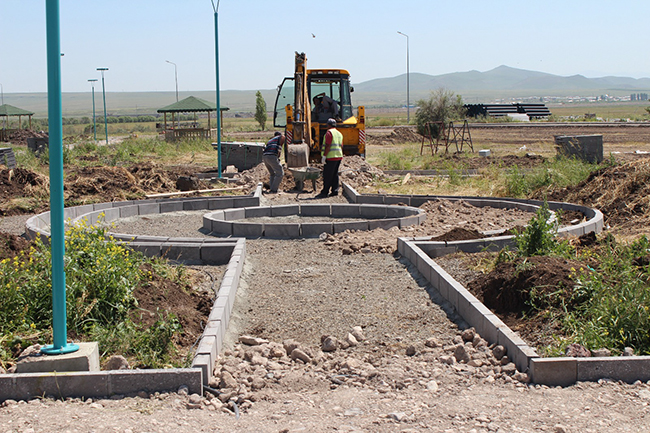 Kafkas Üniversitesi yerleşkesinde çevre düzenlemeleri kapsamında, yapımı devam eden 33 bin metrekarelik alana sahip olan Kampüs Park çalışmaları yoğun bir şekilde devam ediyor.