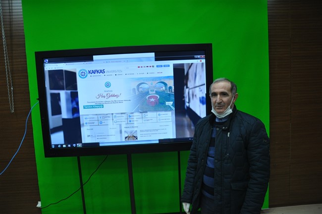 Sistemi tanıtan Kafkas Üniversitesi Rektörü Prof. Dr. Hüsnü Kapu daha sonra canlı yayında olan bir sınıfın dersine girerek öğrencilere “evde kal” çağrısında bulundu.