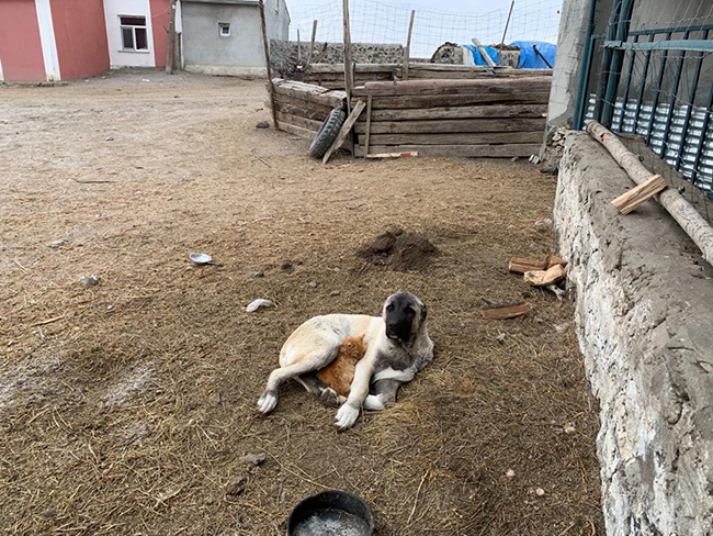 Muhtar Demirkaya, yaptığı açıklamada, kedi ve köpeğinin birbirini soğuktan koruduğunu söyledi. Manzarayı görenlerin duygulandığını ifade eden Demirkaya, "Köpek kediyi koynuna alıp soğuktan koruyor, insanlara ders verecek nitelikte. Zıt hayvanların birbirlerine bu kadar yaklaşmaları insanlara büyük ihtimalle ders verecektir. Demek ki dünyada da barış, kardeşlik ön plana çıkabilir." diye konuştu.