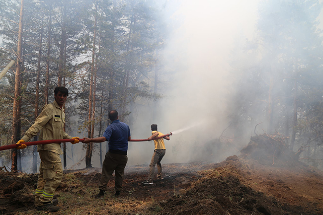 Erzurum’un Oltu ilçesinde ormanlık alanda başlayan yangın üçüncü günde devam ederken yangının söndürülmesi için halktan yardım istendi.