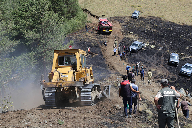 Erzurum’un Oltu ilçesinde çıkan orman yangınına Oltu, Şenkaya, Sarıkamış, Ardahan ve Kars Orman İşletme Müdürlükleri ekipleri araç-gereçleriyle, makine teçhizatlarıyla müdahale etti.