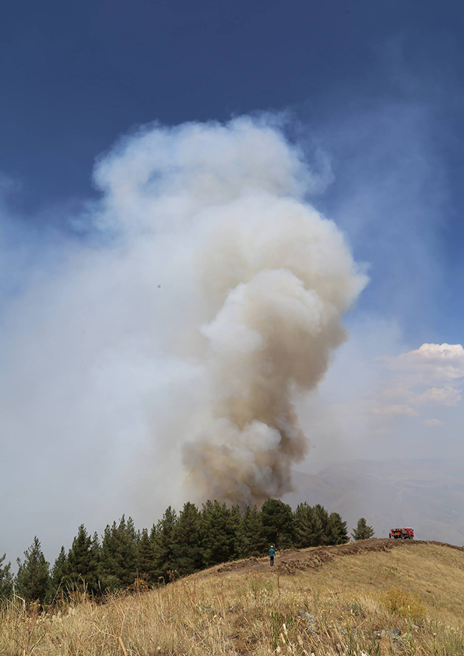 "Cumartesi günü 16.00 sularında orman İşletme Müdürlüğüne yangın ihbarı alındı. İhbarı alır almaz, Erzurum Orman Bölge Müdürlüğüne bağlı Oltu, Şenkaya, Sarıkamış, Ardahan ve Kars Orman İşletme Müdürlükleri ekiplerimiz araç-gereçleriyle, makine teçhizatlarıyla bölgeye intikal etti. Bölgenin dezavantajı, yolunun olmaması ve dağlık bir arazi olmasıdır. Dozerlerimizle şu an buraya yol açtık ve yol açınca söndürme çalışmaları daha da hızlandırıldı. Yangın kontrol altına alınmış durumda ve şu anda bir uçak ve iki helikopter ile söndürme çalışmaları yapılıyor."
