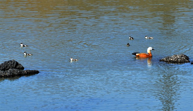 Bölgede yavrularıyla küçük göletlerde yüzmenin keyfini yaşayan ve beslenen angutlar da görüntülendi.