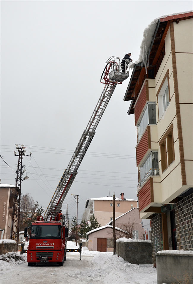 İlçe caddelerindeki binalarda oluşan buz sarkıtları, itfaiye personelince kırıldı. Yol ve kaldırımlarda biriken kar ve buzlar da kamyonlarla ilçe dışına taşındı.