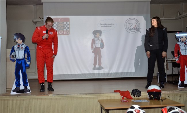 Öğrencilere eğitim veren otomobil pilotu Efe Eryalaz yaptığı açıklamada, 13 yıldır profesyonel olarak spor yaptığını ve TOSFED bünyesinde kurulan Kadınlar Kurulu adına sosyal sorumluluk projeleri gerçekleştirdiklerini belirtti.