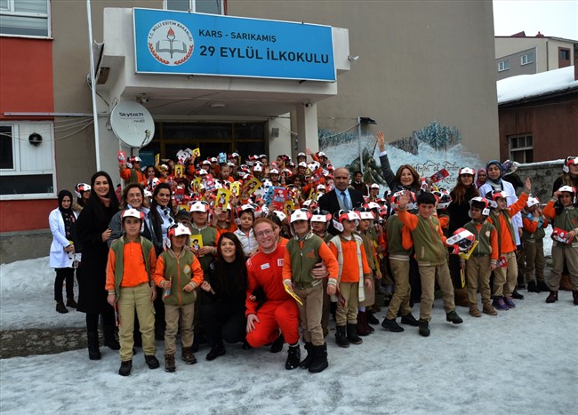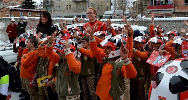 Projenin başarılı şekilde devam ettiğini anlatan Eryalaz, "Sarıkamış'ta öğrencilerimize trafikte yaya olarak, sürücü ve aynı zamanda yolcu olarak öğrenmeleri gereken güvenlik kuralları ve trafik işaretlerini öğretmek için buradayız. Sunumumuz yaptık, çok güzel geçti." dedi.