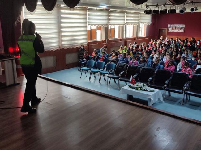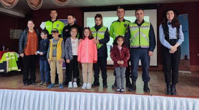 Trafik Polisi Burak Yılmaz ise emniyet kemerinin önemi, oyun oynanacak, bisiklet sürülecek yerler gibi konularda slayt gösterimiyle bilgilendirme yaptı.