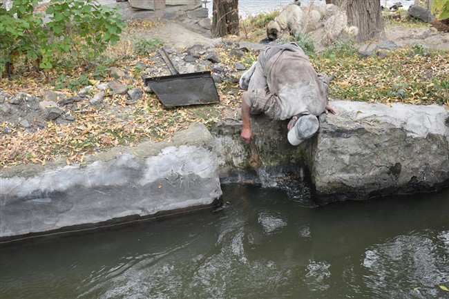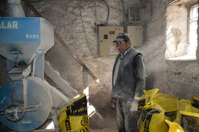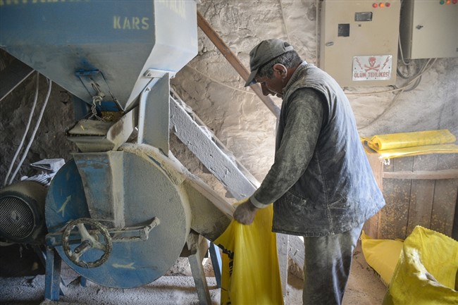 Köydeki Kars çayı kenarında kurulan ve yıllara meydan okuyan su değirmenine çevre köylerden getirilen buğday ve arpalar önce eleme işleminden geçiriliyor.